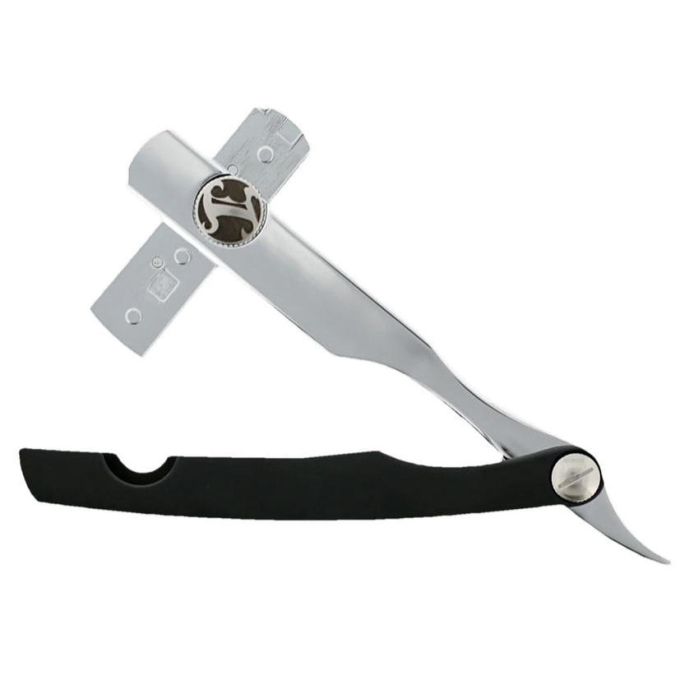 Luxusní shavetta americké značky Irving Barber Company s pochromovanou čepelí s patentovaným magnetickým stabilizátorem čepele, který pevně drží čepelky a díky čemuž je výměna žiletky opravdu bezpečná a jednoduchá. Matně černá ergonomická rukojeť umožňuje stabilní a pohodlný úchop ve všech úhlech. Se shavettou se díky rovnoměrné a vyvážené hmotnosti perfekně pracuje.