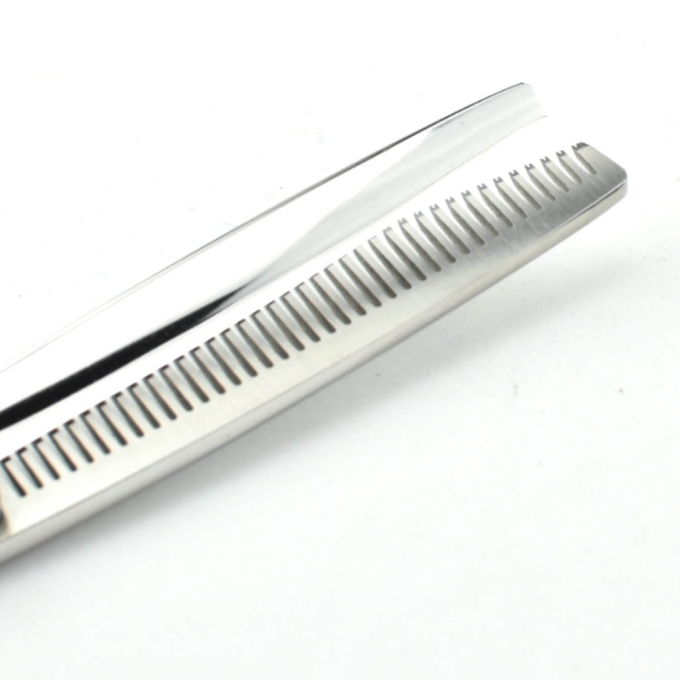 Kvalitní jednostranné efilační nůžky Osaka JK v délce 6ti palců s 38mi tenkými rovnými zuby jsou navržené pro detailní prostříhávání a úpravu přechodů. Redukují počet vlasů přibližně o 25-30%. Jsou vyrobeny z odolné japonské nerezové ocele Hitachi 440C, která vyniká stabilitou a dlouhou výdrží ostří. Klasická rukojeť s dvojitou opěrkou prstu padne přirozeně do ruky a poskytuje jistotu při práci, zejména v kratších a přesnějších sestřizích. Plochý regulační šroub umožňuje nastavení nůžek dle vašich požadavků. Symetrická rukojeť umožňuje používat nůžky se zuby nahoře i dole.