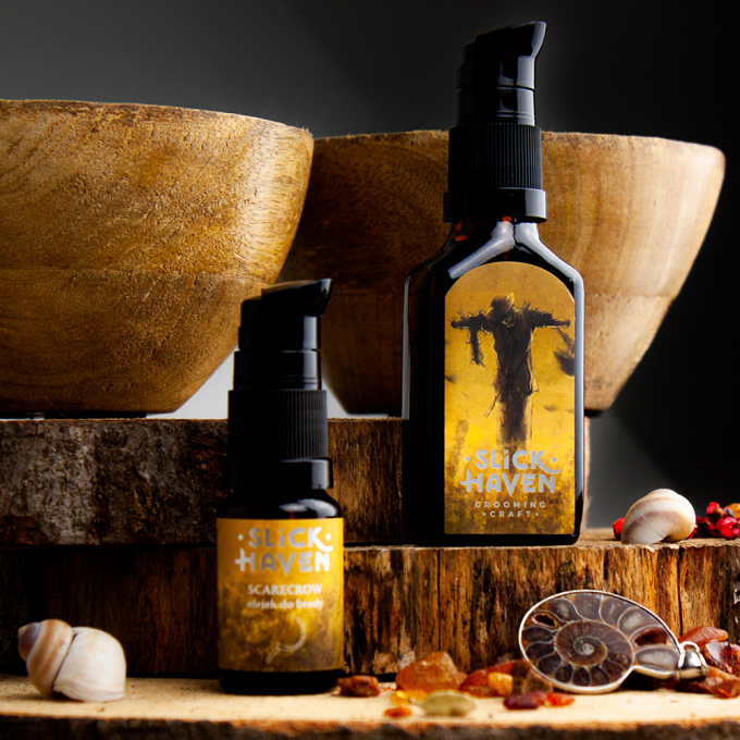 Olej na vousy Scarecrow (30 ml) od Slickhaven bude chránit vlhkost vašich vousů stejně pečlivě, jako strašák chrání své plodiny. Přírodní rostlinné oleje se postarají o výživu vousů od kořínků a o obnovu poškozených vousů. Obsažený dýňový olej je skutečnou vitamínovou bombou, ovesný olej zklidňuje podráždění a vysoká hladina jojobového oleje pomůže pleti regulovat produkci kožního mazu. Má bylinnou vůni čerstvého sena s akordy jalovce a břízy. Dodáváno ve stylové papírové krabičce. Vyrobeno v Polsku.