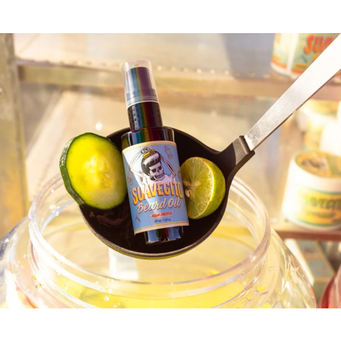 Olej na vousy Suavecito (30 ml) v jarní limitované edici 2025 s originální vůní Aqua Fresca, která kombinuje péči o vousy s osvěžující vůní inspirovanou tradičním mexickým nápojem. Výborně změkčuje a hydratuje po celý den vousy, zabraňuje jejich lámání a třepení. Díky obsaženému arganovému oleji vyživuje nejen vousy, ale i pokožku pod nimi. Působí také proti nepříjemnému svědění. Lehká textura oleje se rychle vstřebává, nezanechává mastný pocit a dodává vousům zdravý lesk. Dodáváno ve skleněné lahvičce s pumpičkou. Unikátní design obalu je inspirován ručně malovanými cedulemi z tradičních trhů, což dodává produktu autentický charakter. Svěží vůně kombinuje tóny mandarinek a květin doplněné o hřejivé dřevité tóny. Vyrobeno v USA.